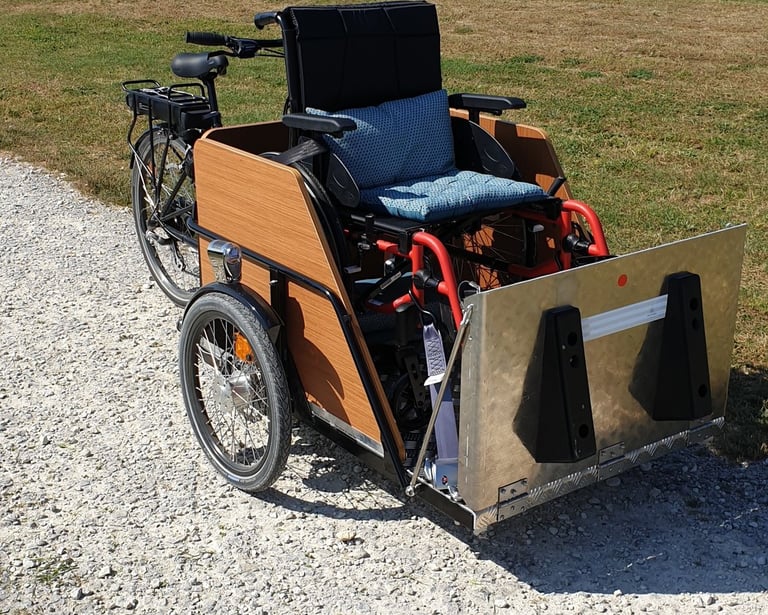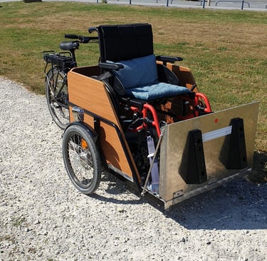 Nos triporteurs sont spécialement conçus pour accueillir les personnes en fauteuil roulant.