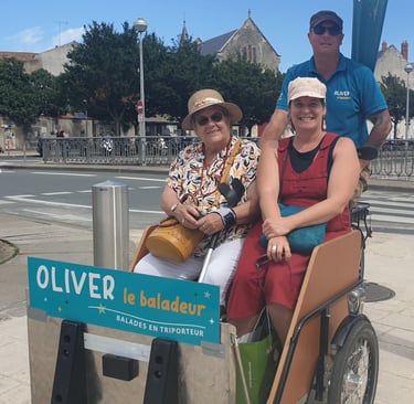 Les balades en triporteur d'Oliver Le Baladeur sont une expérience inoubliable pour les personnes à mobilité réduite. Confort et accessibilité au rendez-vous !